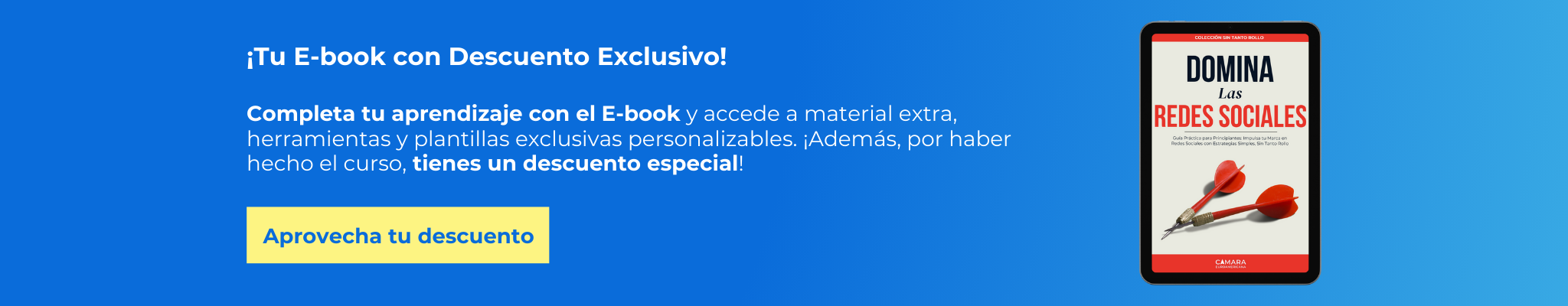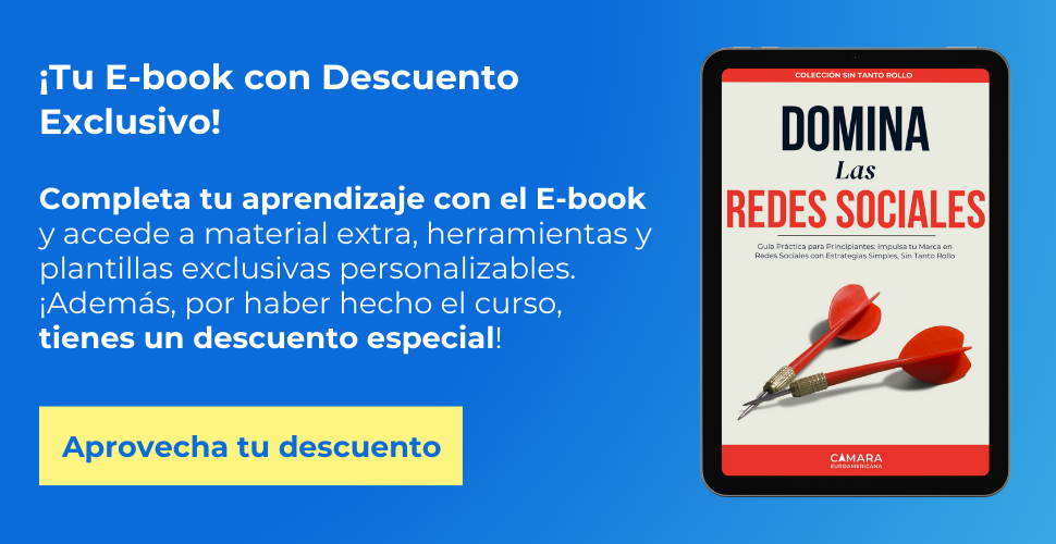 Tendrás toda esta información estructurada y mucho más para complementar lo que aprenderás aquí en nuestro E-book «Domina las Redes Sociales», de la Colección Sin Tanto Rollo. Con este material, podrás aplicar las estrategias aprendidas para impulsar tu marca y, por ende, tu emprendimiento.